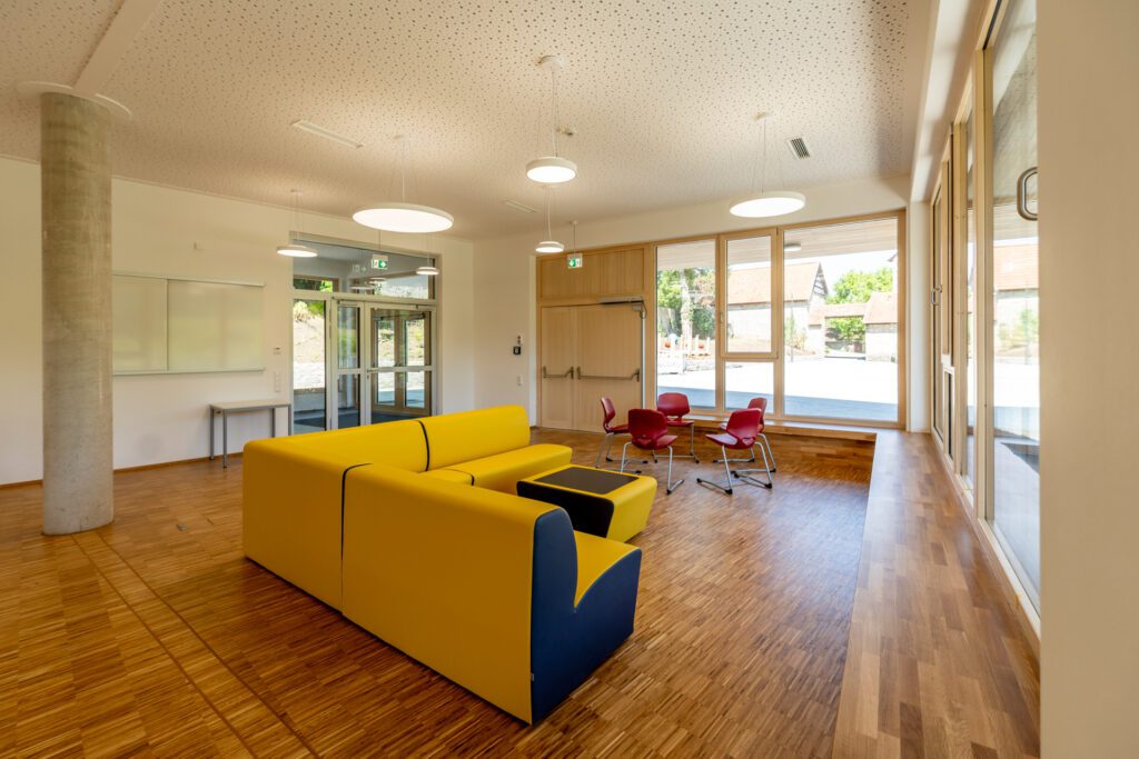 Energetisch ist das Gebäude hervorragend gedämmt. Eine Wärmepumpe und eine Photovoltaikanlage sorgen für eine nachhaltige und effiziente Energieversorgung. So verbindet der Neubau historische Sensibilität mit modernen pädagogischen und ökologischen Anforderungen.